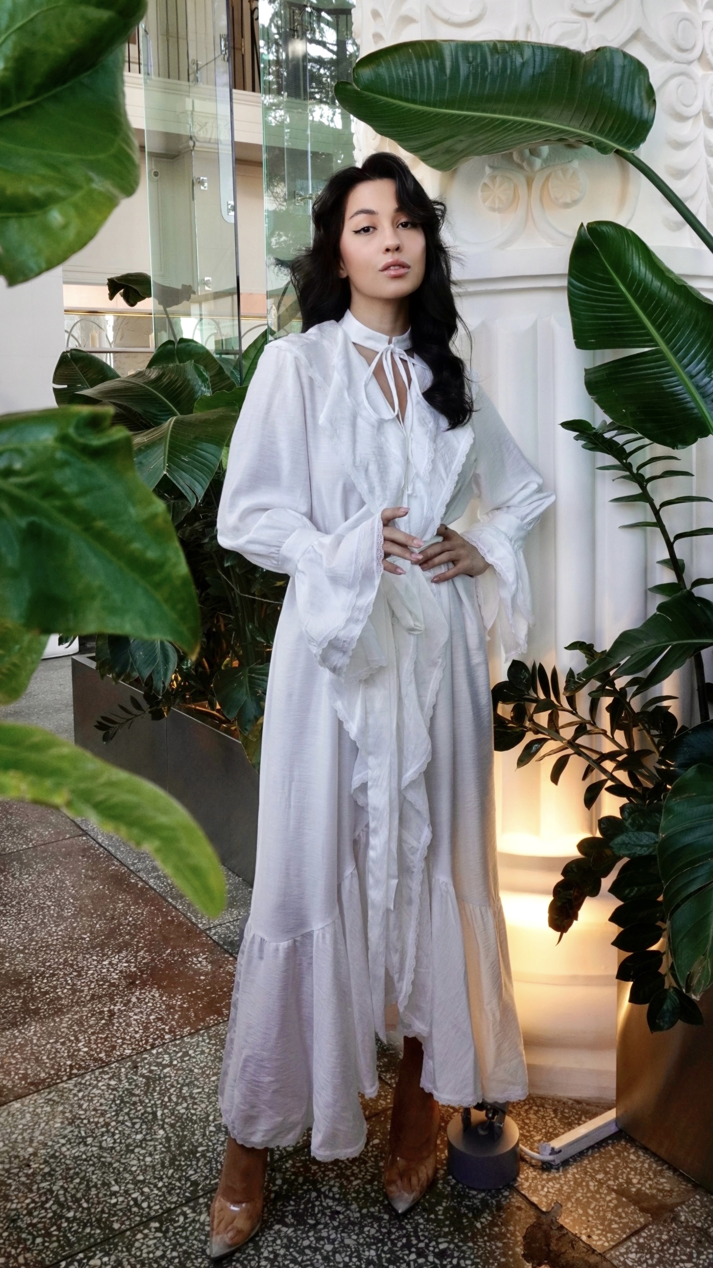 Нежное платье из качественной вискозы, которое покорит сердца своей утончённостью и элегантностью. Красивые рюши и кружево создают уникальный стиль, подчёркивая вашу индивидуальность и красоту. Стойка-чокер добавляет образу пикантности и шика, делая вас неотразимой в любом месте.